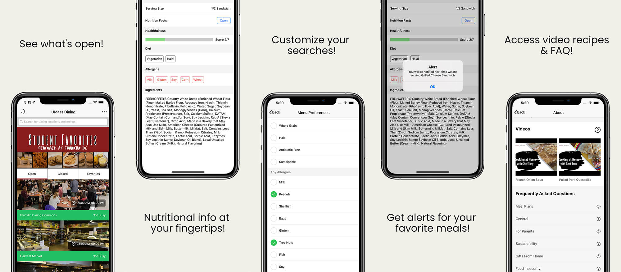 - Receive notifications and special offers from nearby UMass Dining locations utilizing Beacon technology
